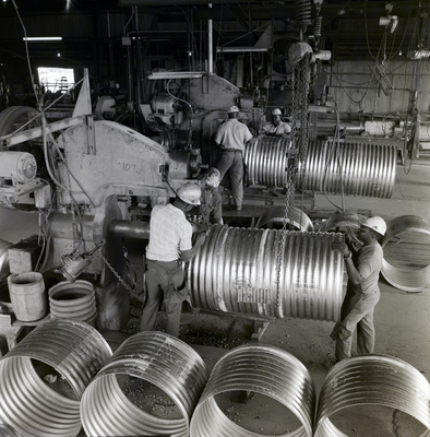 Gandy, George Skip IV, "Employees Facilitating Spiral Culvert Steel Pipe Construction, Florida Steel, A" (1960). Gandy Photographs - Commercial. Image 5352.