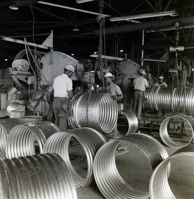 Gandy, George Skip IV, "Employees Facilitating Spiral Culvert Steel Pipe Construction, Florida Steel, C" (1960). Gandy Photographs - Commercial. Image 5353.