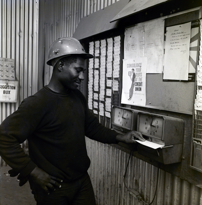 Gandy, George Skip IV, "Florida Steel Employee Scanning Timesheet, B" (1960). Gandy Photographs - Commercial. Image 5356.