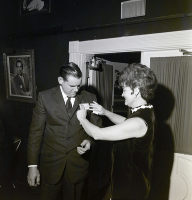 Gandy, George Skip IV, "Guest Receives Nametag, Florida Steel Christmas Party" (1960). Gandy Photographs - Commercial. Image 5481.
