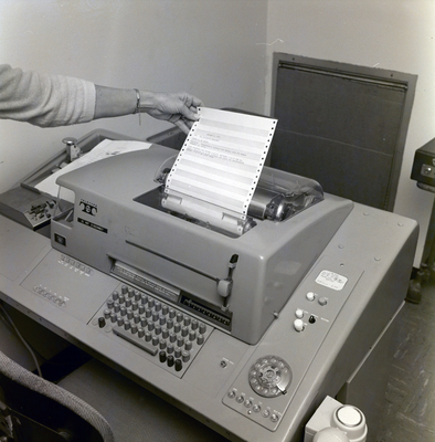 Gandy, George Skip IV, "Teletype Machine and Message, Florida Steel, B" (1970). Gandy Photographs - Commercial. Image 5500.