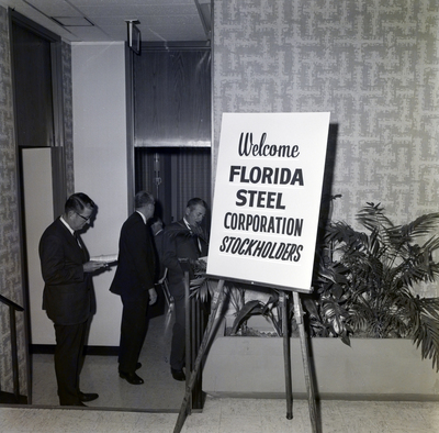 Gandy, George Skip IV, "Welcome Florida Steel Stockholders Sign, Annual Meeting, A" (1960). Gandy Photographs - Commercial. Image 5502.
