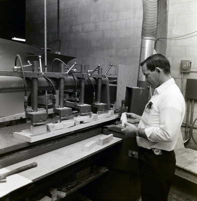 Gandy, George Skip IV, "Woodworker Inspects Product, Fashion Craft Furniture, A" (1975). Gandy Photographs - Commercial. Image 5622.