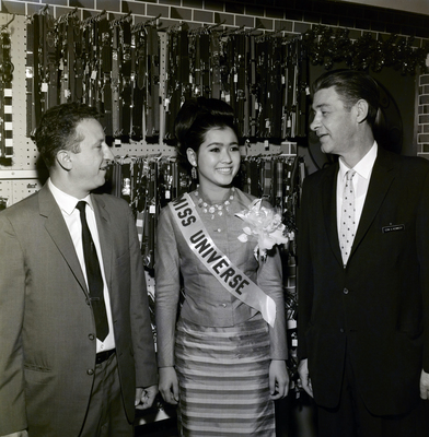 Gandy, George Skip IV, "Miss Universe, EDW. G. Kennedy, and Unknown Man at JM Fields" (1966). Gandy Photographs - Commercial. Image 5750.