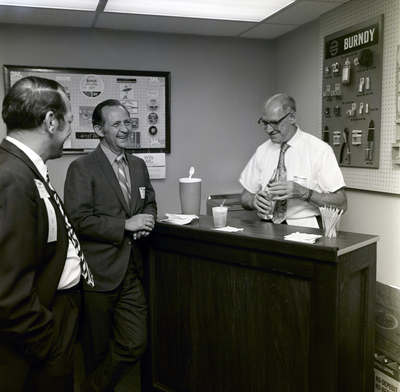 Gandy, George Skip IV, "Attendee Pours a Beverage, Fife Florida Electric Supply Event" (1975). Gandy Photographs - Commercial. Image 5805.