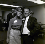 Mrs. Jack Jameson poses with an unknown man in an office during a Fife Florida Electric company event.