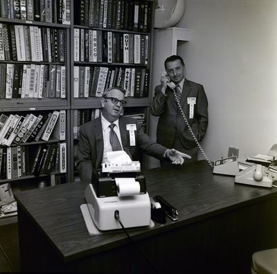 Gandy, George Skip IV, "Two Employees at Desk, Fife Florida Electric Supply, B" (1975). Gandy Photographs - Commercial. Image 5850.