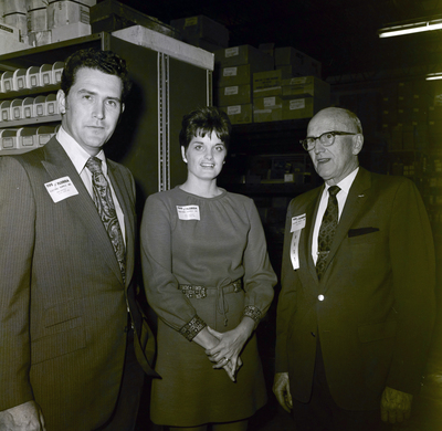 Nell Webster, Bob Webster, and an unknown attendee standing together at a Fife Florida Electric Supply company event.