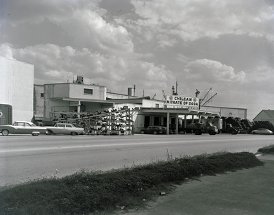 Exterior of a building with a sign that reads "Chilean Nitrate of Soda" on Cumberland Ave near the Garrison Terminal dock entrance.