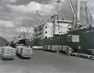 Gandy, George Skip IV, "Cranes on Ship Carries Pallets of Bags on Board, Fillette Green" (1970). Gandy Photographs - Commercial. Image 5953.