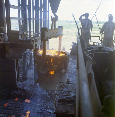 Gandy, George Skip IV, "Steel Pot with Hot Steel at Florida Steel's Indiantown Electric Steel Mill, A" (1970). Gandy Photographs - Commercial. Image 6440.