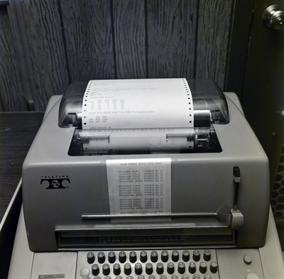 Gandy, George Skip IV, "Printer in Use at Florida Steel Corporation Office, B" (1960). Gandy Photographs - Commercial. Image 6488.