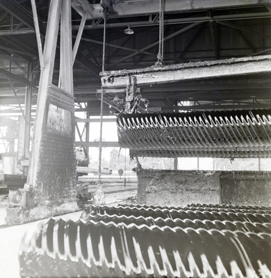 Machinery casting the metal piping at the Florida Steel Corporation culvert plant.