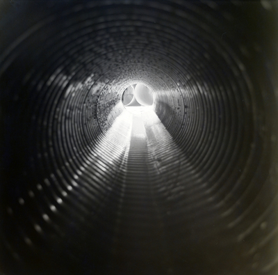 Gandy, George Skip IV, "Inside View of Metal Piping at Florida Steel Corporation Culvert Plant" (1970). Gandy Photographs - Commercial. Image 6703.