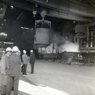 Business executives from Texas visit a steel mill, part of the Florida Steel Corporation. Photographed for Florida Steel Corporation in Tampa, Florida.
