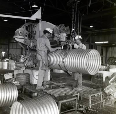Cutting the steel piping at a Florida Steel Corporation steel mill.