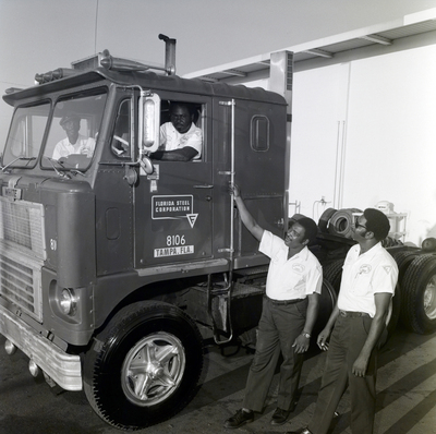 Gandy, George Skip IV, "Truck and Trucker Crew of Florida Steel Corporation, C" (1973). Gandy Photographs - Commercial. Image 7117.