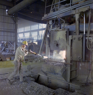 Gandy, George Skip IV, "Working the Furnace at Florida Steel Corporation Facility, H" (1970). Gandy Photographs - Commercial. Image 7144.