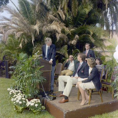 Gandy, George Skip IV, "Freedom Savings Bank, Celebration, Men Gathered around Podium, H" (1986). Gandy Photographs - Commercial. Image 7313.