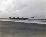 Planes wait to take off at an Air Force Base, possibly McDill Air Force Field. This photograph was commissioned for General Telephone & Electronics Corporation.