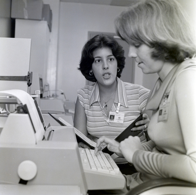 Gandy, George Skip IV, "D.D. Villanueva and Female Employee at Word Processor, F" (1970). Gandy Photographs - Commercial. Image 7460.