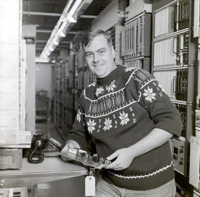 A portrait of D. St. John, a poster employee, for General Telephone & Electronics Corporation.