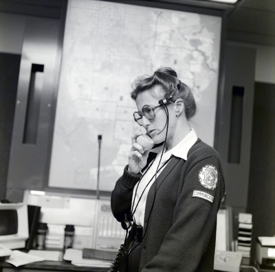The dispatch room for emergency services for Pinellas County in Largo, Florida. This photograph was taken for General Telephone & Electronics Corporation.