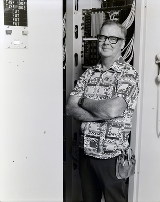 Gandy, George Skip IV, "Telephone Installer Portrait, L" (1970). Gandy Photographs - Commercial. Image 7793.
