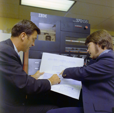 Gandy, George Skip IV, "Two Employees in Florida Steel Computer Room, E" (1974). Gandy Photographs - Commercial. Image 7991.