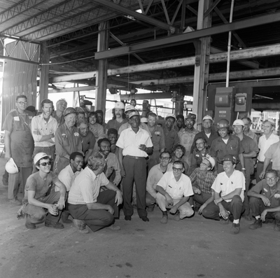 Gandy, George Skip IV, "Mr. Moon Takes Group Portrait with Florida Steel Employees, A" (1974). Gandy Photographs - Commercial. Image 8121.