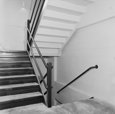 A close look at the stair railings produced by Florida Steel Corporation in Palm Avenue Baptist Tower located at 215 East Palm Avenue in Tampa, Florida, circa 1974 when the building was built.