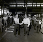 A Florida Steel Corporation plant worker receives an award circa 1975.