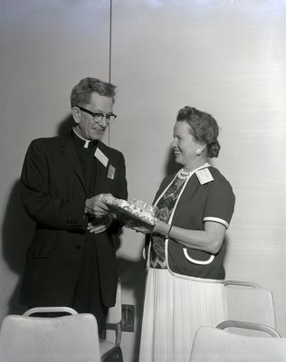 Gandy, George Skip IV, "Reverend Theodore Flynn Gives Gift to Helen Meredith" (1961). Gandy Photographs - Commercial. Image 8373.