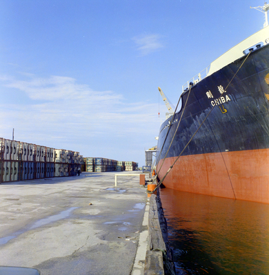 Gandy, George Skip IV, "Ford Motor Co. Shipment Arrives via Ship Named Chiba, Z" (1972). Gandy Photographs - Commercial. Image 8576.