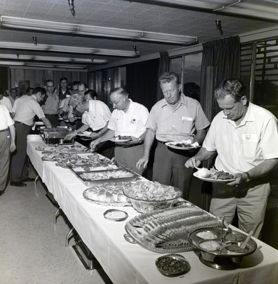 Gandy, George Skip IV, "Georgia Pacific Corporate Event Attendees at a Buffet, F" (1970). Gandy Photographs - Commercial. Image 8635.