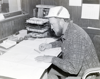Gandy, George Skip IV, "Gold Bond Building Products Employee Reviewing Documents" (1970). Gandy Photographs - Commercial. Image 8694.