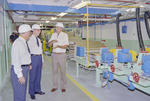 Gold Bond Building Products executives in hard hats touring the factory production line.