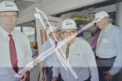 Gold Bond Building Products executives attending a Calcidyne System demonstration in a factory.
