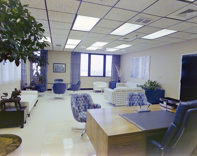Gandy, George Skip IV, "Office With Blue Interior by Stapleton Gooch, C" (1970). Gandy Photographs - Commercial. Image 8810.