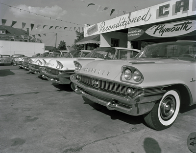 Gandy, George Skip IV, "Bill Goodman's Chrysler Plymouth Dealership Lot, C" (1960). Gandy Photographs - Commercial. Image 8850.