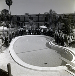 A large group of employees and executives from Graham Jones Paper Company gathered around a swimming pool at an event.