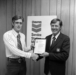 Gandy, George Skip IV, "Gregory Clinton Accepts his Chevron Service Station Training Certificate, A" (1974). Gandy Photographs - Commercial. Image 9454.