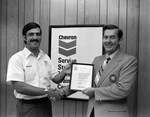 Gandy, George Skip IV, "Man Receives Chevron Service Station Training Certificate, E" (1975). Gandy Photographs - Commercial. Image 9622.