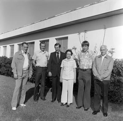 A group of six men and one woman who completed the Chevron Service Station training in Tampa, Florida, in April 1975.