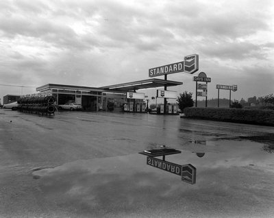 Gandy, George Skip IV, "Rainy Standard Oil Service Station, A" (1975). Gandy Photographs - Commercial. Image 9666.