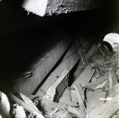 Gandy, George Skip IV, "Interior View of Broken Wooden Cable Reel with Splintered Boards, A" (1960). Gandy Photographs - Commercial. Image 9750.