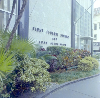 Gandy, George Skip IV, "First Federal Savings and Loan Association Sign, Downtown Tampa, A" (1970). Gandy Photographs - Streets, Buildings, and Construction. Image 2617.