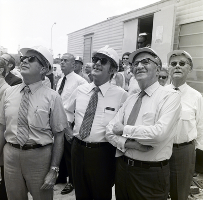 Gandy, George Skip IV, "Crowd Looks up, First Financial Tower Topping off Ceremony, A" (1972). Gandy Photographs - Streets, Buildings, and Construction. Image 2658.