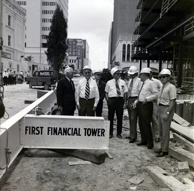 Gandy, George Skip IV, "Eight Men and Final Beam, First Financial Tower Topping off Ceremony, C" (1972). Gandy Photographs - Streets, Buildings, and Construction. Image 2669.