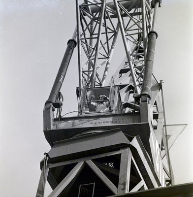 Gandy, George Skip IV, "Worker Operating Crane, Sims Service Removal on First Financial Tower" (1972). Gandy Photographs - Streets, Buildings, and Construction. Image 2681.